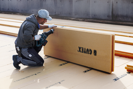 Unsere Dämmsysteme sind nur so gut wie die Komponenten, die in ihnen stecken. Deshalb bietet Gutex nicht nur hochwertige Holzfaserdämmstoffe, sondern auch perfekt abgestimmtes Zubehör plus passendes Werkzeug – für eine einfache Verarbeitung, maximale Effizienz und Ergebnisse, die überzeugen. Entdecken Sie unser Sortiment und maximieren Sie den Erfolg Ihres Projekts.